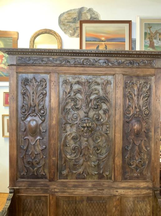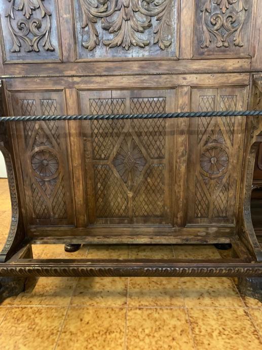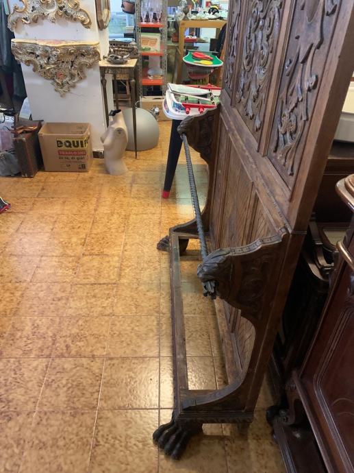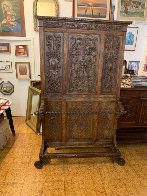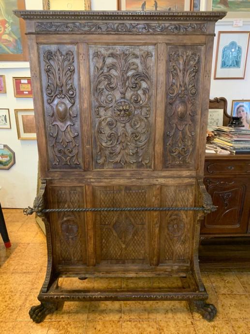 Beneško stojalo za pohodne palice iz 18. stoletja iz orehovega lesa, v celoti ročno izrezljana ... širina 130 cm, globina 40 cm, višina 200 cm .