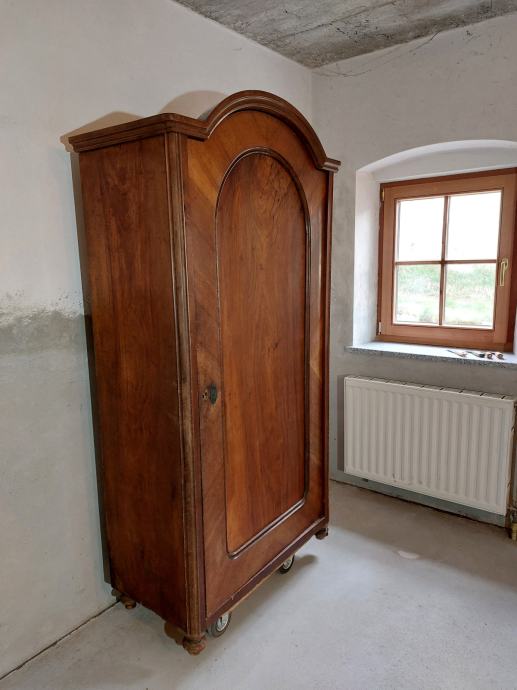Garderobna omara v neobaročnem stilu. Orehov furnir, dimenzije: višina 193cm, širina 101cm, globina 50 cm.