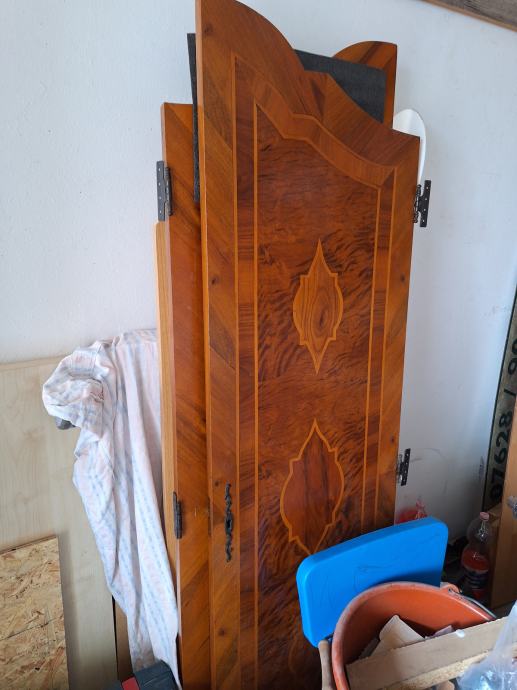 Dimenzije približno: 200 × 160 × 65 cm, notranje približno 165 × 135 × 50 cm. Ključavnice in ključi so prisotni in funkcionalni. Omara se lahko delno razstavi za transport (police in vrata).