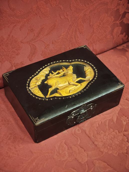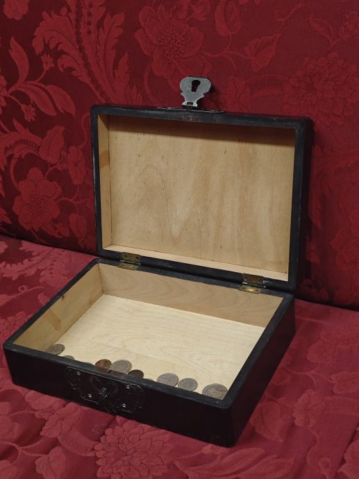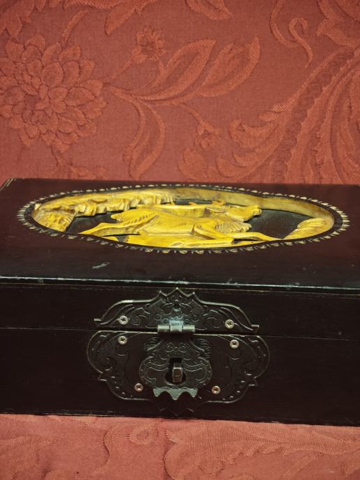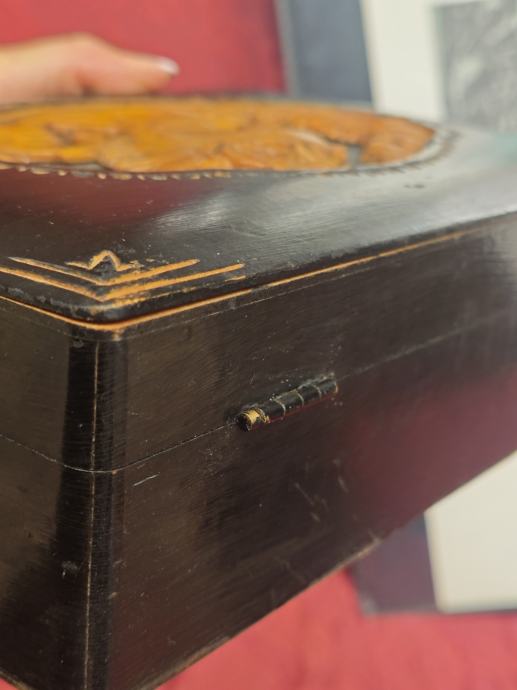 Starinska ročno izrezljana lesena škatla. V 8 x D 27 x Š 20 cm. Cena: 40 evrov