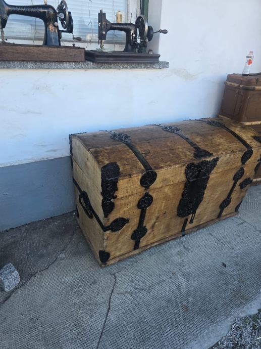 Starinska velika skrinja iz masivnega lesa.