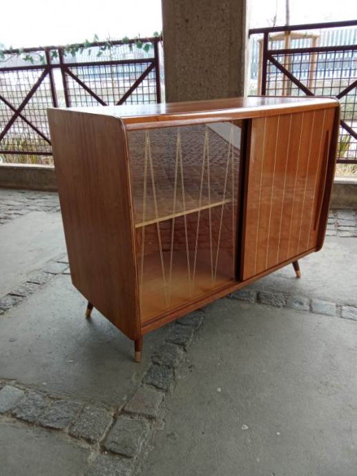 Prodamo Brestovo vitrino iz 60ih. Omara je v originalnem stanju, z orginalno nalepko proizvajalca, izjemno lepo ohranjena z originalnim steklom z vzorcem. Vitrina je širine 98 cm, globine 48 cm in višine 80 cm.