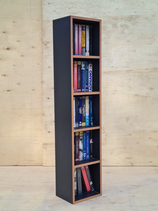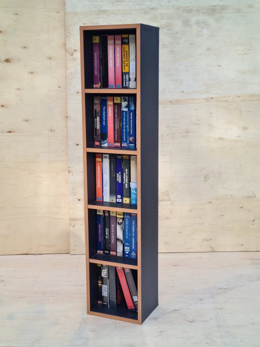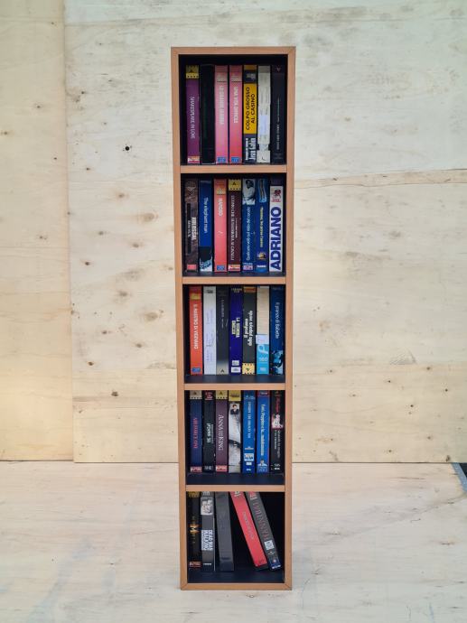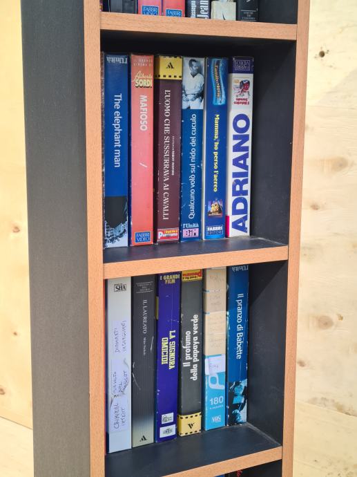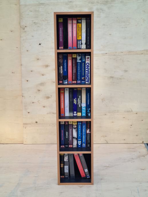 Odlično ohranjen kasetni predalnik, odličen za zbiratelje kaset. Predalnik je črne barve, furniran in meri 110 x 24 cm. Prodaja se z kasetami na sliki.