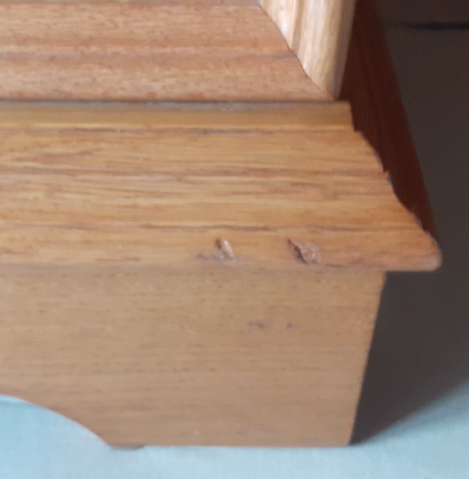 Glavno ogledalo( dim; 48x62cm) se pritrdi na zadnji del zgornje plošče z medeninastimi vijaki. Manjša ogledala sta gibljiva na levi in desni strani.