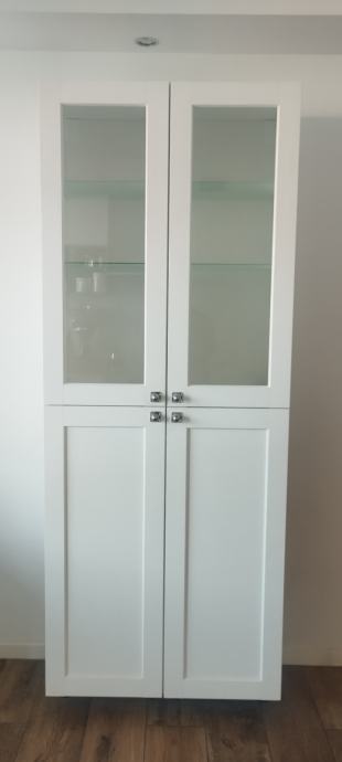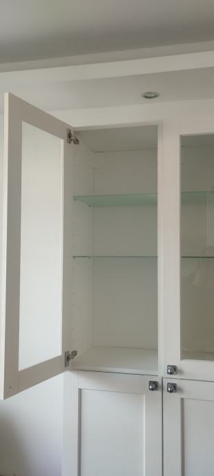 Prodam kuhinjsko omaro bele barve s 4 steklenimi policami in štirimi lesenimi policami.