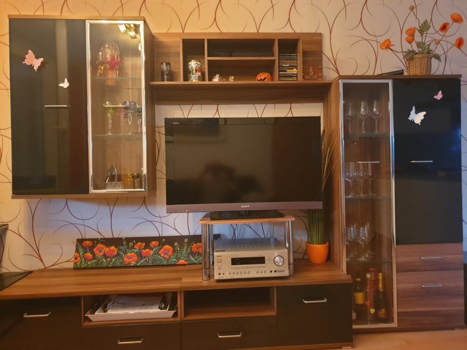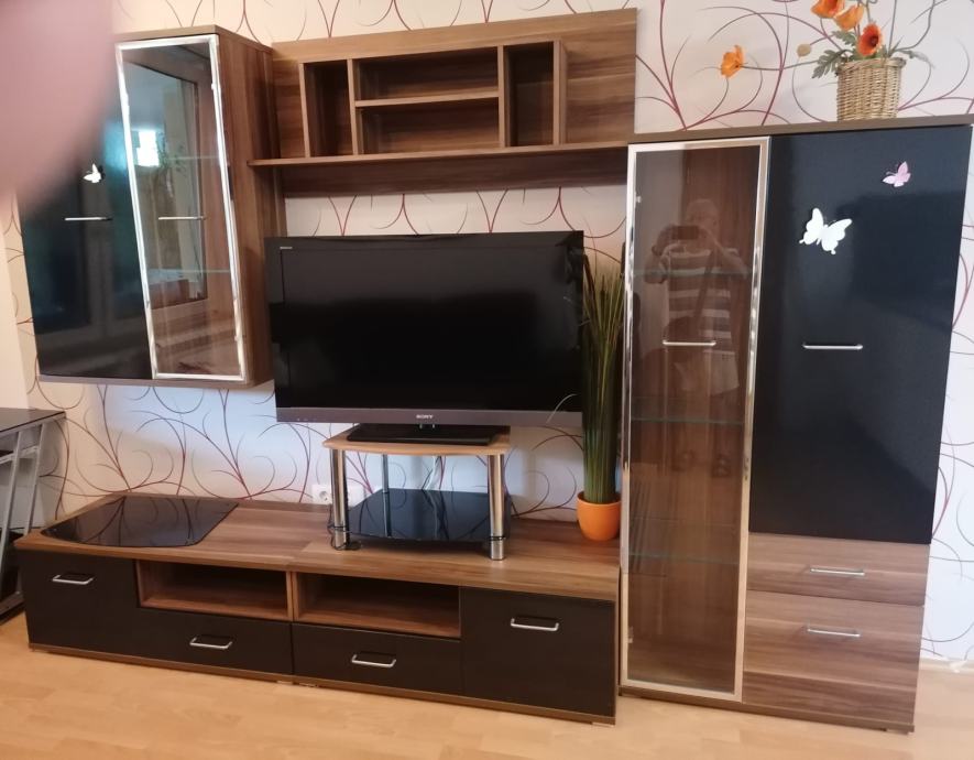 Prodam dobro ohranjen dnevni regal z tv- jem. Metuljčki na omari so dekorativni in ko se snamejo ni videti da so bili nameščeni.