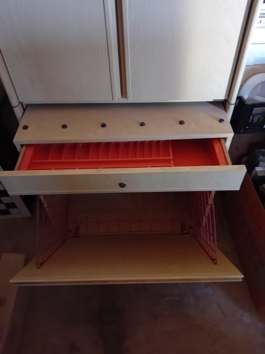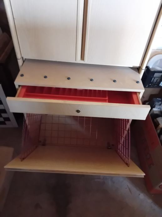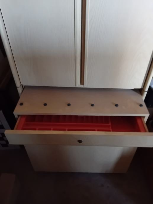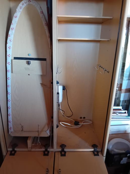 Prodam priročno omaro za šivanje, likanje dim. 74x43+101,5x177,5 cm (širina x globina, podaljšana za delovno površino x višina ). Vgrajen je el. priključek in osvetlitev. Omara je dobro ohranjena, tel. 064-255 340