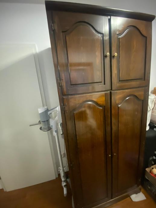 Prodajam kakovostno omaro v temno rjavem odtenku, s štirimi prostornimi vrati in elegantnimi zaobljenimi robovi.