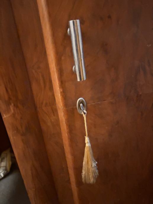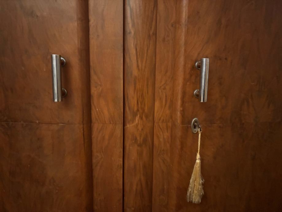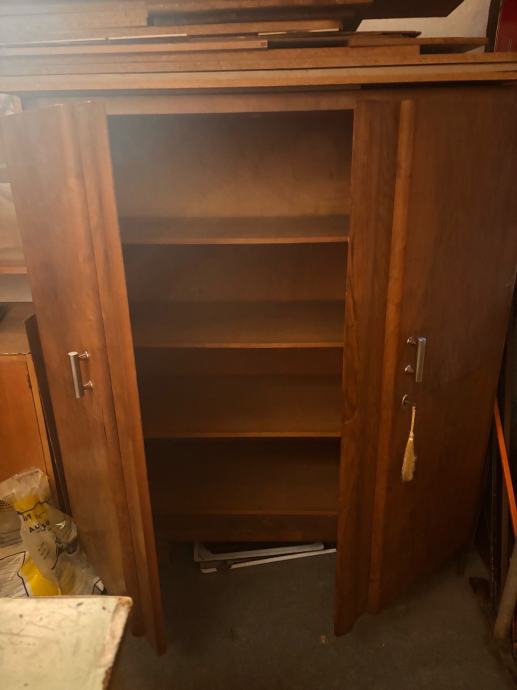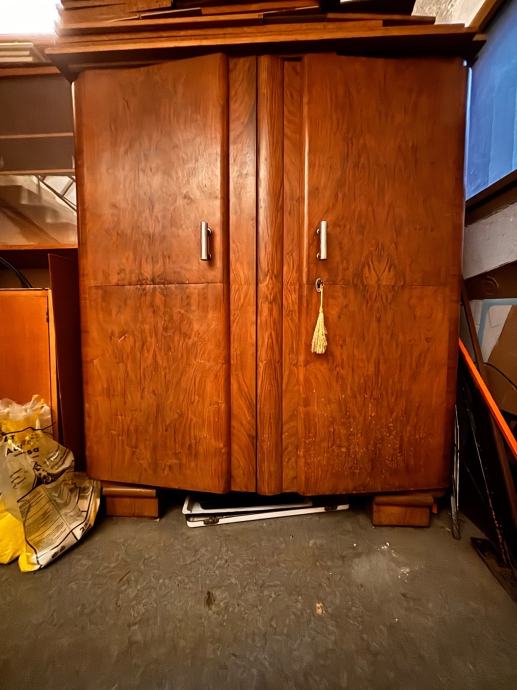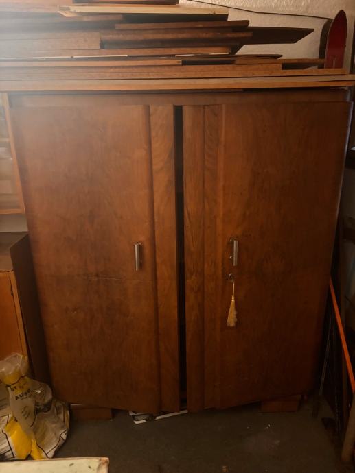 Prodam kakovostno vintage omaro iz masivnega lesa, izdelano v Jugoslaviji ali srednji Evropi, v obdobju 30.–40. let (pozni art déco / zgodnji modernizem).