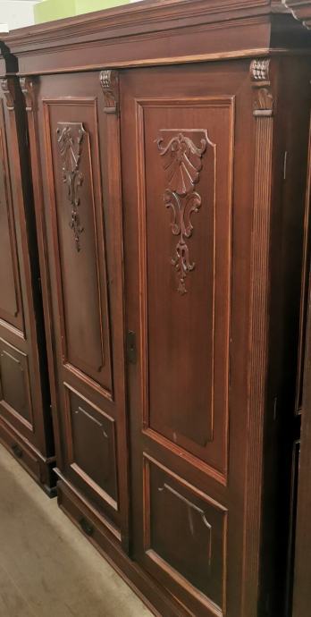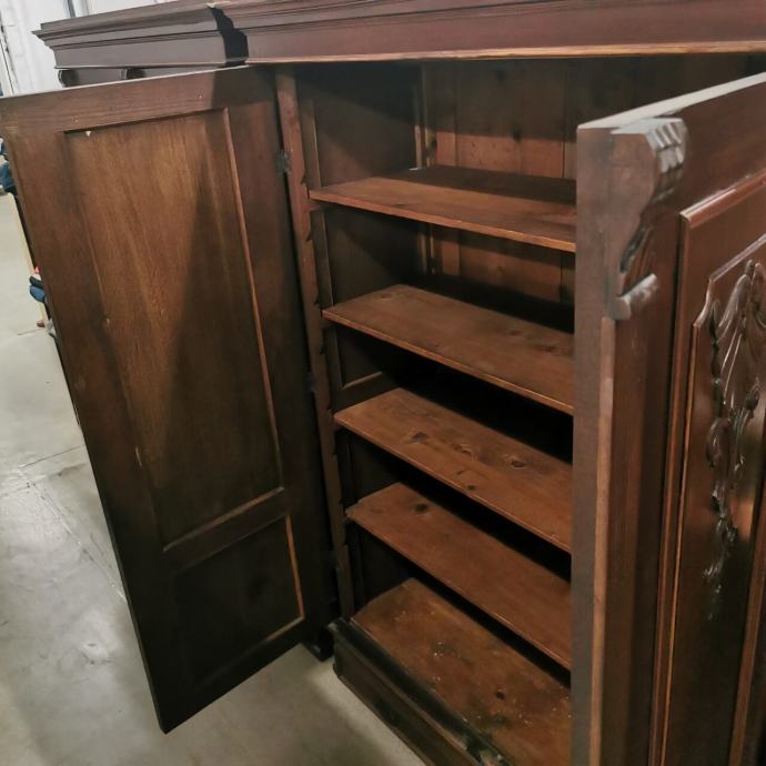Omara ima velik predal na dnu in štiri police ter izrezljano okrasitev na vratih.