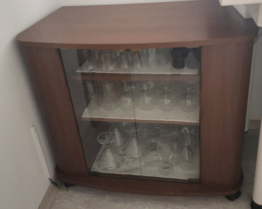 Prodam vitrino temno rjave barve, na kolesih, s steklenimi vrati, mere širina 81 cm, višina 70 cm, globina 48 cm. Informacije na tel.: 031/605 102