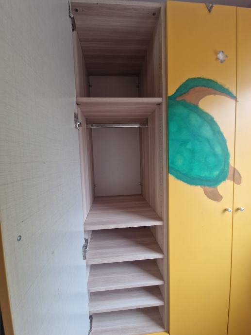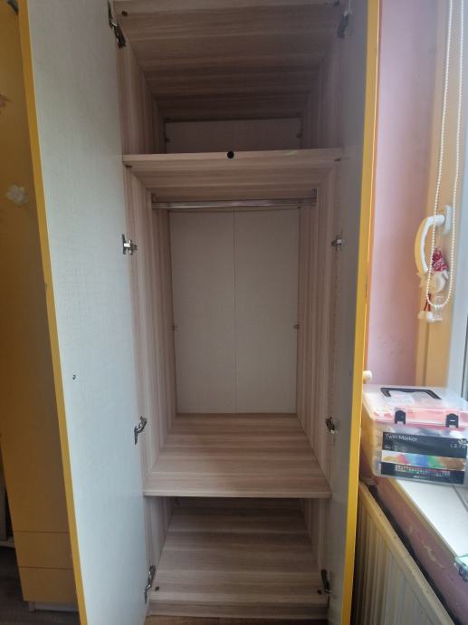 Omara za mladinsko sobo 1D plus 2D. Dimenzije za 2- delna vrata so 73.6 cm in za 1-delna vrata so 47.5 cm širine. V globino sta obedve 60.0 cm. V višino pa 215 cm, (prodajam zaradi majhnega prostora). Prevzem osebno v Kopru, omara je razstavljena in pripravljena za transport. Lahko si pogledate še moje druge oglase.