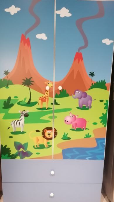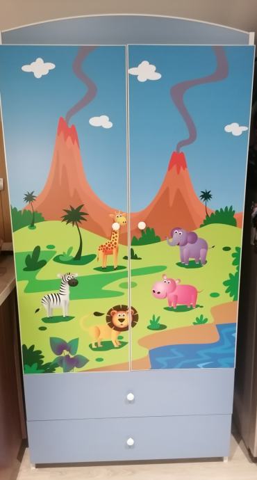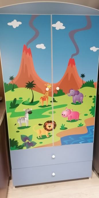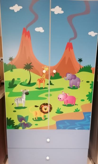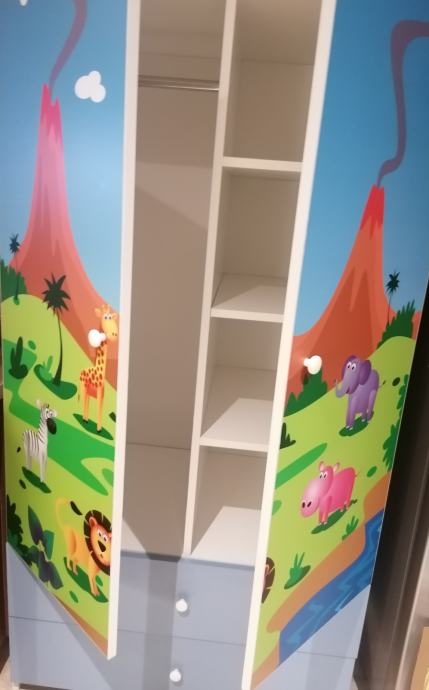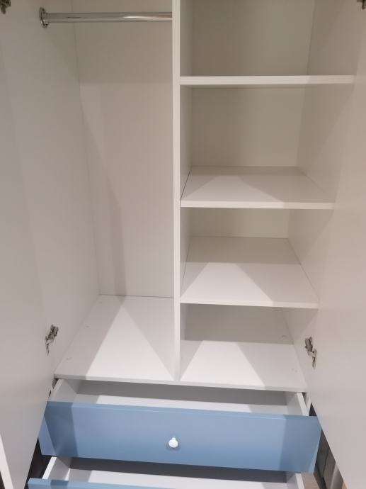 super prostorna, globina omare primerna, da lahko brez težav obesiš oblačila, z dvema velikima izvlečnima predaloma. Omara mere 186/90/57, poličnik 186/90/34.