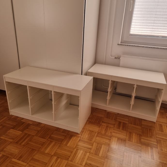 Prodamo 2 omarici Ikea Trofast brez zabojnikov. Dokupijo se lahko posebej v različnih barvah v Ikei. Cena 1 omarice je 30€. Cena obeh je 55€.