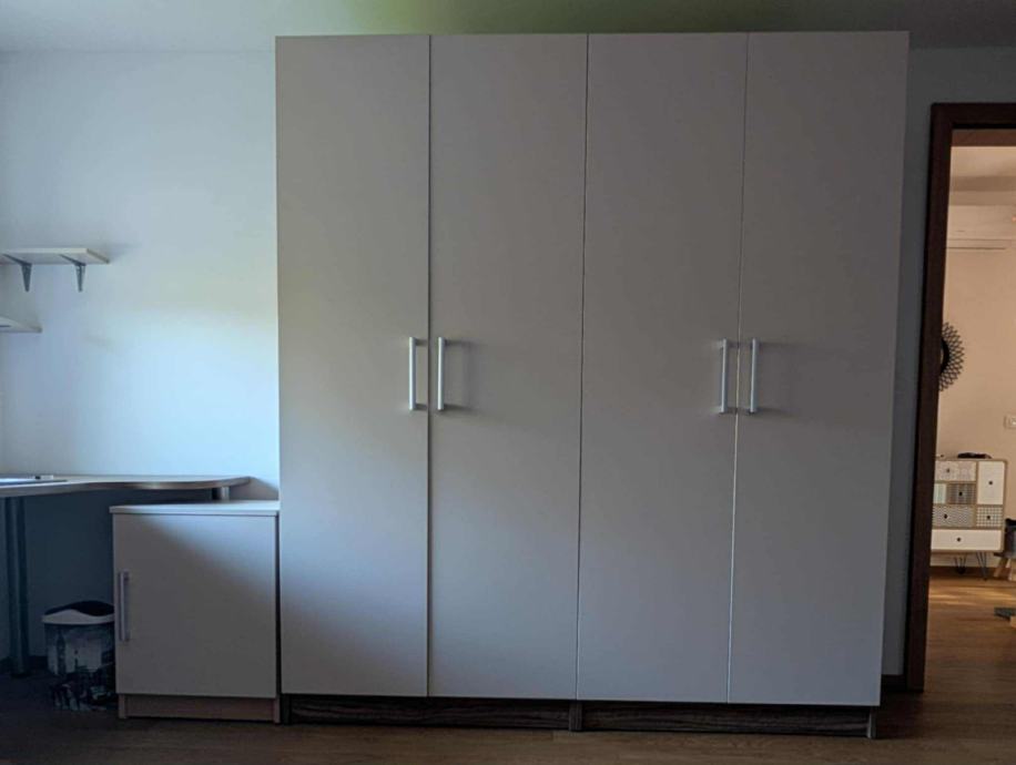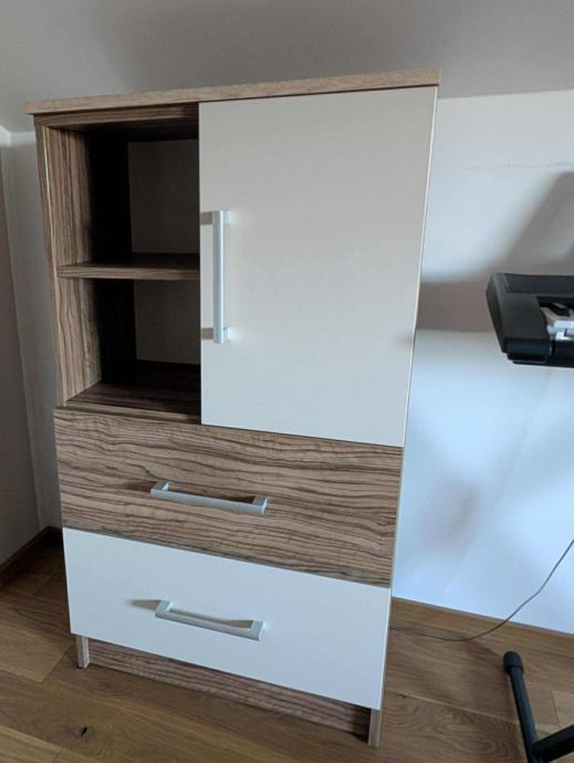 - garderobna omara (polovica je s policami in polovica s prostorom za obešalnik)