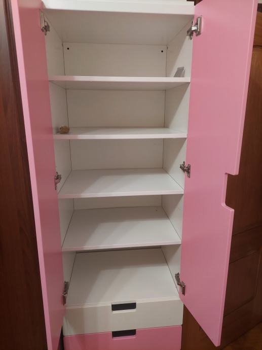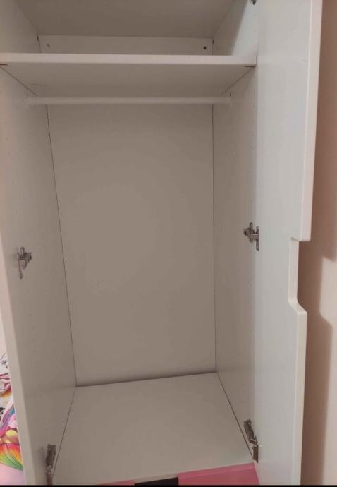 Prodam omari, eno s policami ter eno z obesalom. Poleg je tudi skrinja za igrace.