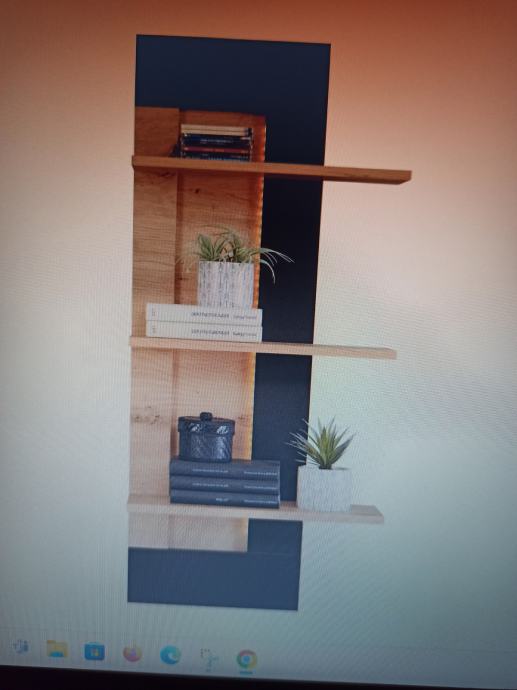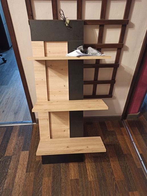 NOV stenski regal v črni barvi in barvi smreke, prevlečeno z melaminsko smolo .