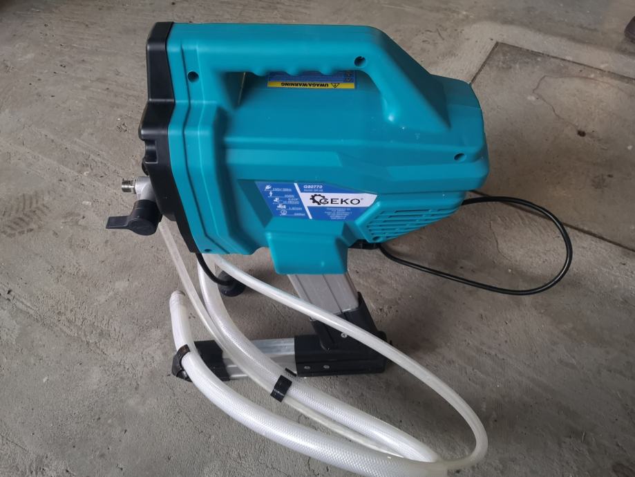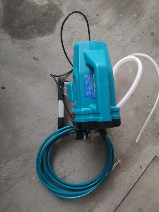 Prodaja se nova pištola s pripadajočo opremo za nanos fasadne barve vidna na fotografijah.