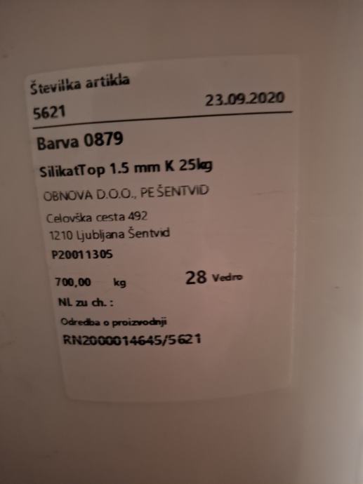 Prodam fasadni omet SILIKATTOP K1,5, 25 KG barva 0879, cena 20 €