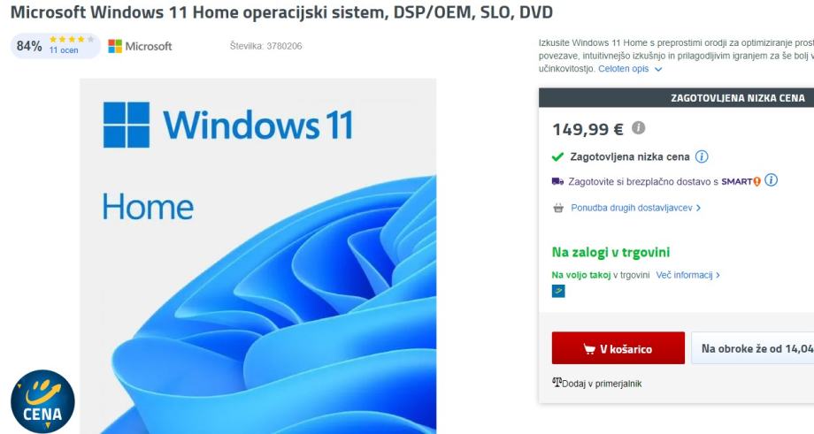 Zaradi nakupa prenosnika z windowsi prodam posebej kupljen a neuporabljen 64 bitni slovenski windows 11 home, še zaprta škatla s cd-jem