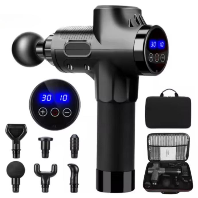 Sprostite napetost in izboljšajte svoje počutje z našo akumulatorsko 2500mAh masažno pištolo. Ta visoko zmogljiva naprava je zasnovana za globinsko masažo mišic, ki pomaga pri lajšanju bolečin, pospeševanju regeneracije in zmanjšanju stresa. Z vgrajenim LCD zaslonom, 6 različnimi masažnimi glavami in priročno torbo za prenašanje je ta masažna pištola popoln spremljevalec za aktivno življenje.