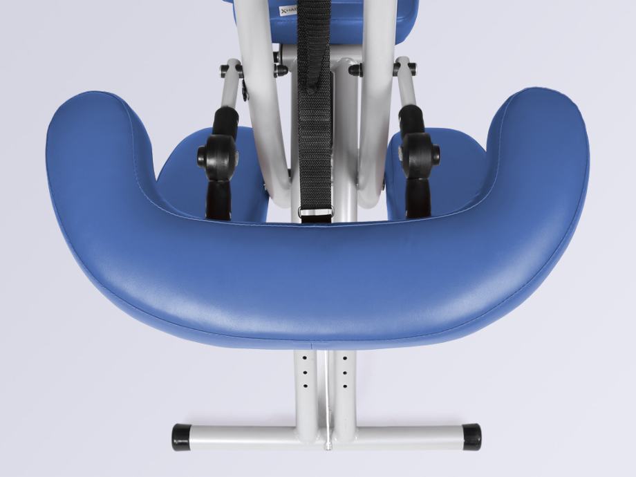 Nastavitev višine stola omogoča pravilno poravnavo kolenskih sklepov terapevta glede na telo pacienta.