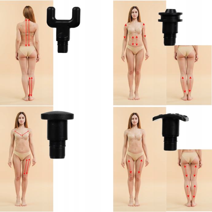 6 ZAMENLJIVIH _ KONČEV EK – vsaka skupina mišic zahteva ustrezne dražljaje, zahvaljujoč 6 različnim konicam pa je mogoče delati s številnimi mišicami, tudi s težko dostopnimi. V kompletu so konice kot so: okrogle, ploščate, izstrelke in vilice – podroben opis kje jih uporabiti najdete spodaj v opisu. Pištola je izdelana iz najkakovostnejših materialov, se odlično prilega roki, mesto kjer jo držimo je prekrito z nedrsečo strukturo, ki preprečuje zdrs med tretmajem .
