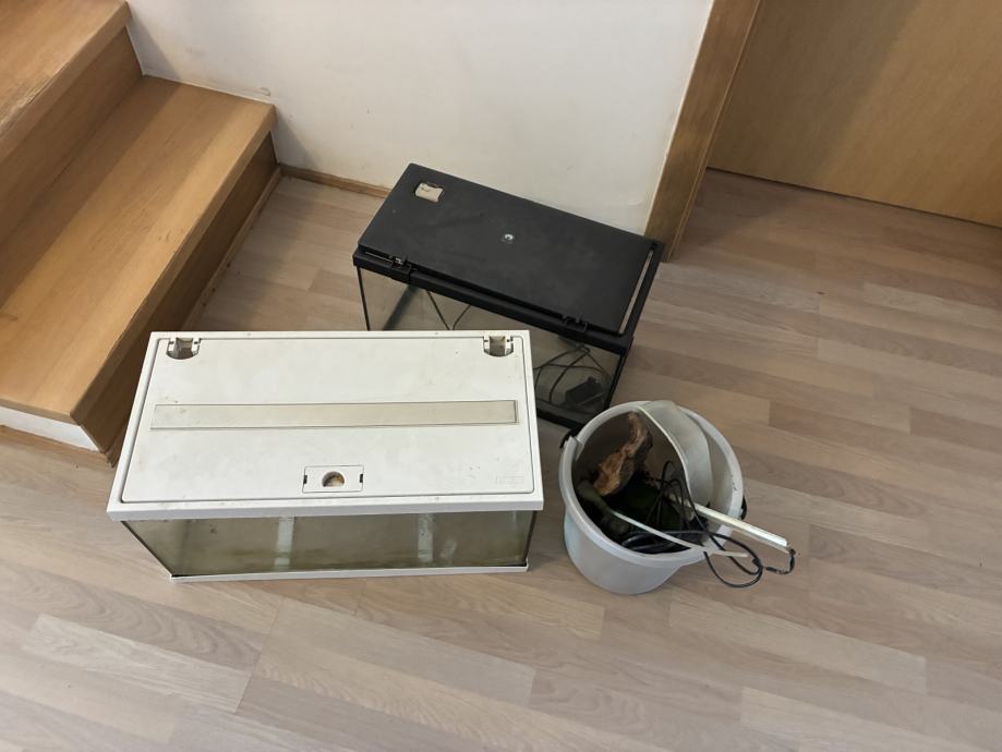 Prodam dva akvarija 80 in 120 L. Poleg je še oprema za akvarije 3 filtri led luči kamni korenine….