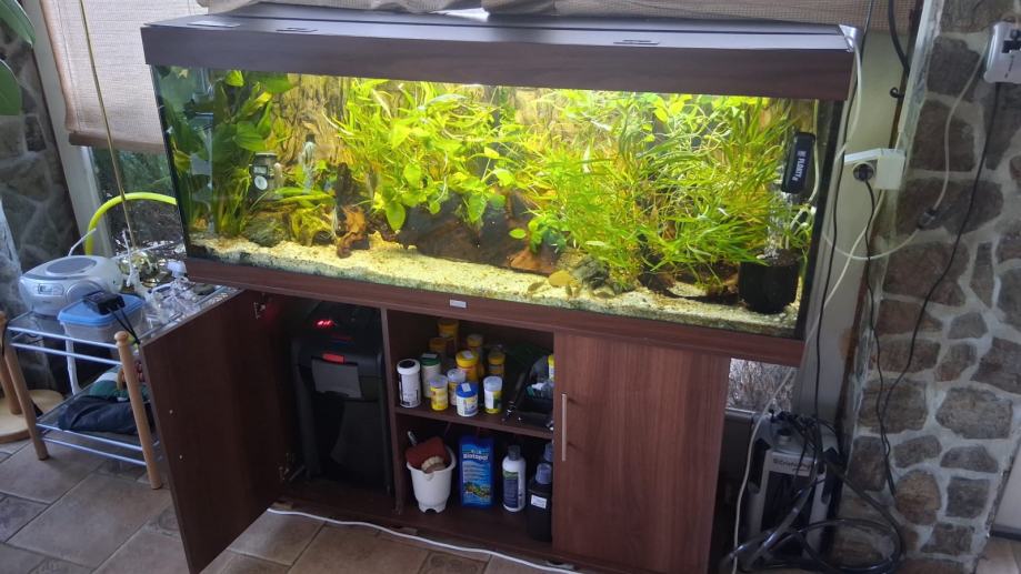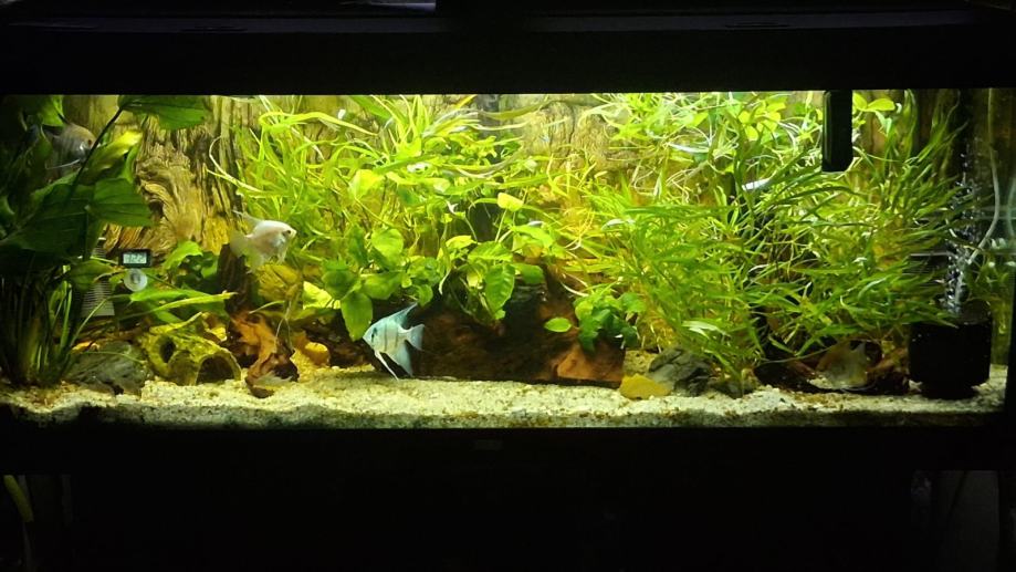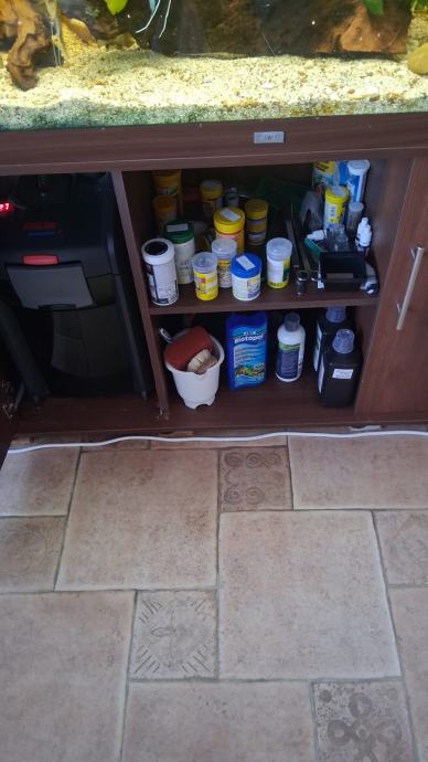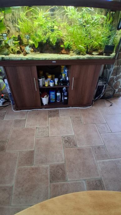 Akvarij ima veliko opreme in dodatkov komplet za čiščenje,
