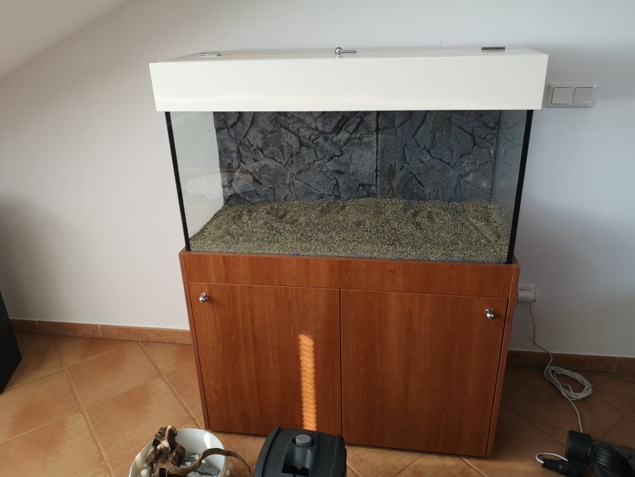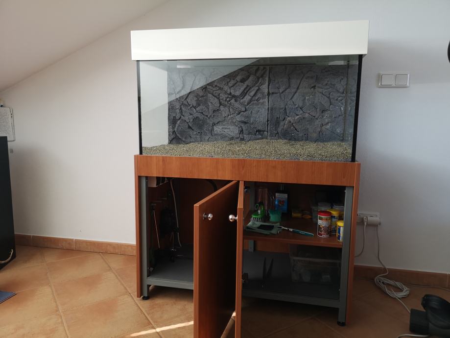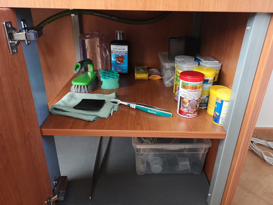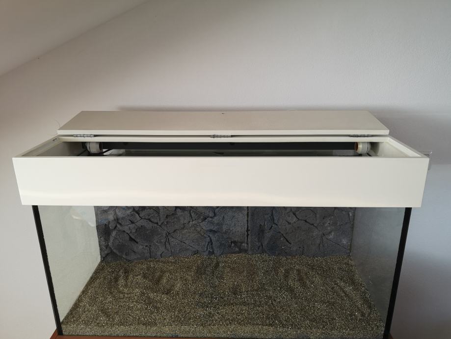Akvarij ima pod pokrovom še steklen pokrov , da je zaščiten pred brizganjem vode v žarnice in v zgornji pokrov
