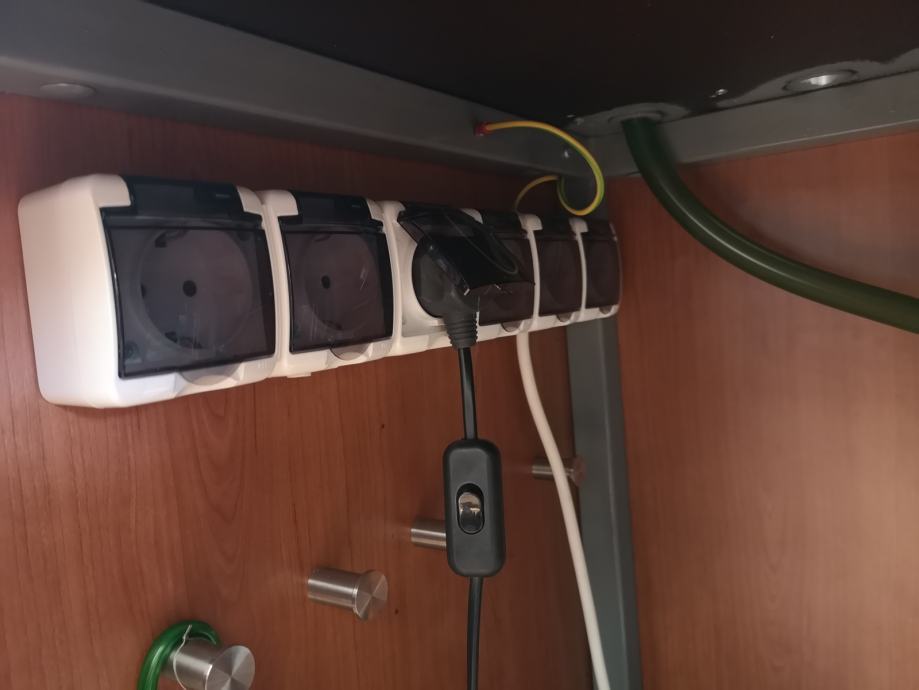 Elektro instalacija v omarici z 6 vtičnicami in kablom za 220-240v