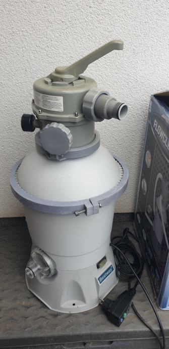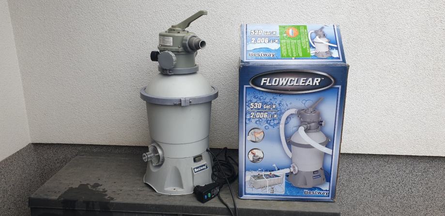 Bestway Flowclear peščeni filter 2000l/h, odličen; smo uporabljali kroglice namesto peska in je bila voda odlična. Primeren za bazene od 1100 - 16000l.