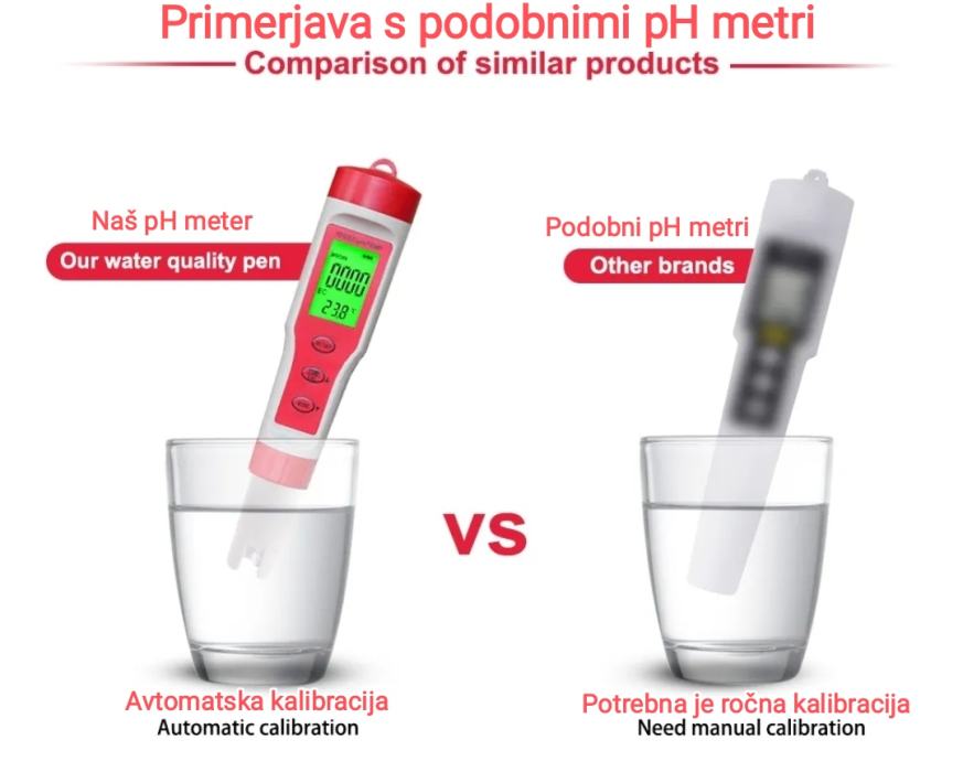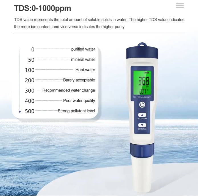✓ Profesionalni 5v1 (PH/TDS/EC/SLANOSTI/TEMP) merilec kvalitete vode
