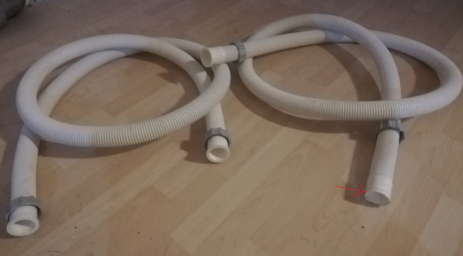 Prodam dve cevi za bazen 38mm premer in 3m dolzine. Na eni manjka rob ki prime vijak na eni strani, druga stran je bp. Druga cev je brez napak.