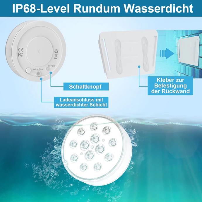 Podvodna LED Innedu, polnilna razsvetljava za bazen IP68,