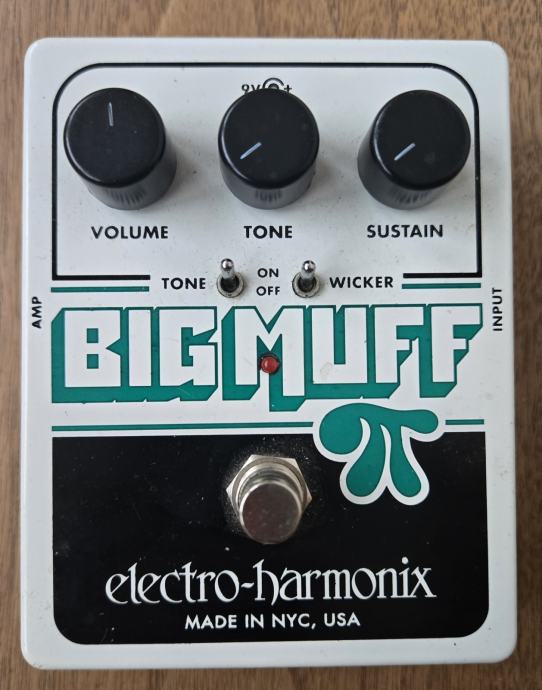 Prodam Big Muff Pi with Tone Wicker kitarski pedal - efekt. Wicker stikalo preklaplja med originalnim Big Muff Pi zvokom in sodobnejšim zvokom s 3 high frequency filtri. Made in USA. Možna menjava za Behringer Fuzz Bender. 60 eur + poštnina. Prevzem ali dostava na relaciji NM-LJ.