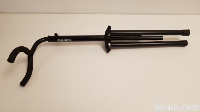 Prodam trinožni nosilec za kitaro. Nosilec je nastavljiv po višini. Zgornji del nosilca je mehko obložen, da se ne poškoduje vrat kitare. Nosilec je črne barve in se ga ob neuporabi lahko zloži.