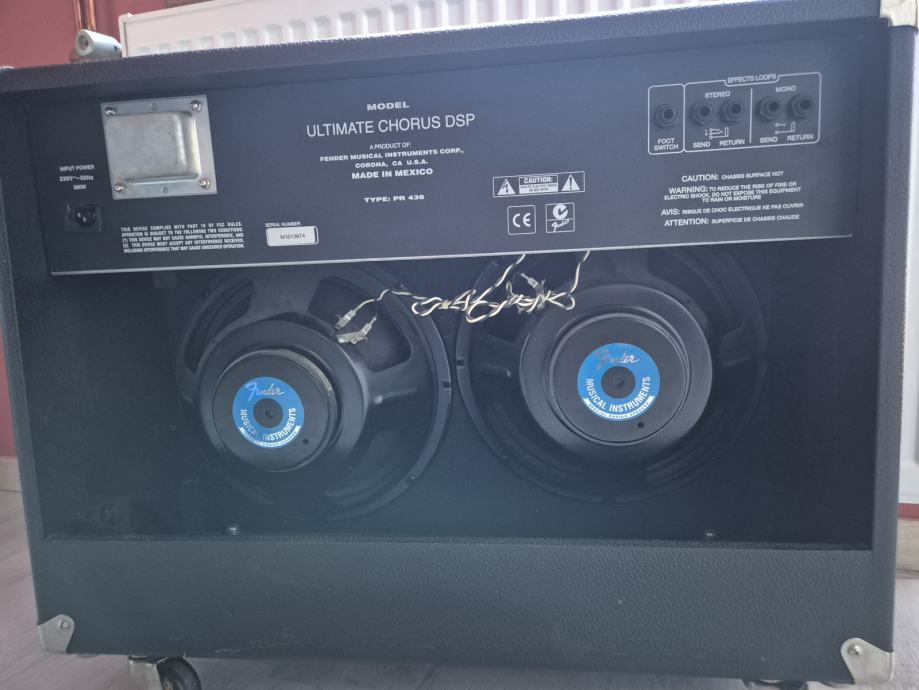 Prodam Fender Ultimate Chorus DSP 2-kanalni 2 x 65-Watt 2x12" stereo kitarski kombo z vgrajenimi efekti, letnik 2000 - 2004, v zelo dobrem stanju.