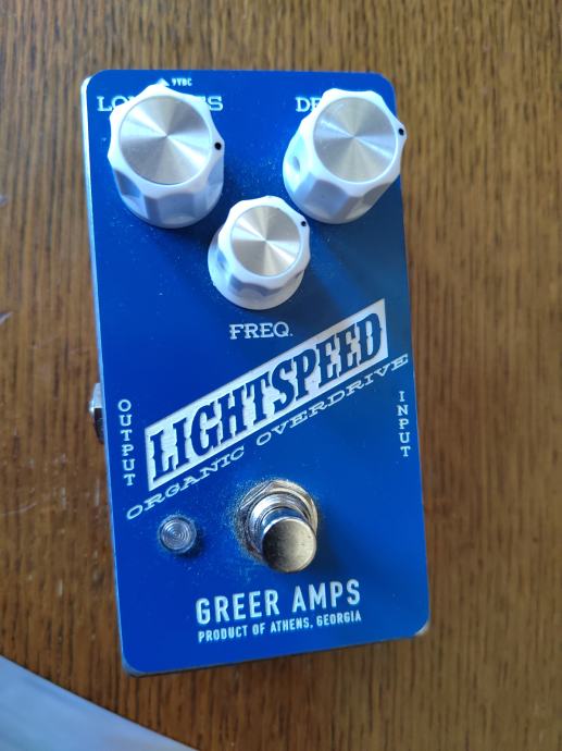 Lightspeed overdrive je organski overdrive, zvok je jasen in za razliko od nekaterih drugih overdrivov ne izgubi basa. Ne gre za distortion pedal, ampak overdrive, ki bodisi naredi bolj kompleksen clean, ali pa organski, čist in jasen overdrive primeren za rock in blues. Če komu to kaj pomeni, ga uporablja Lee Anderton (the Captain). Deluje na baterijo ali power supply.