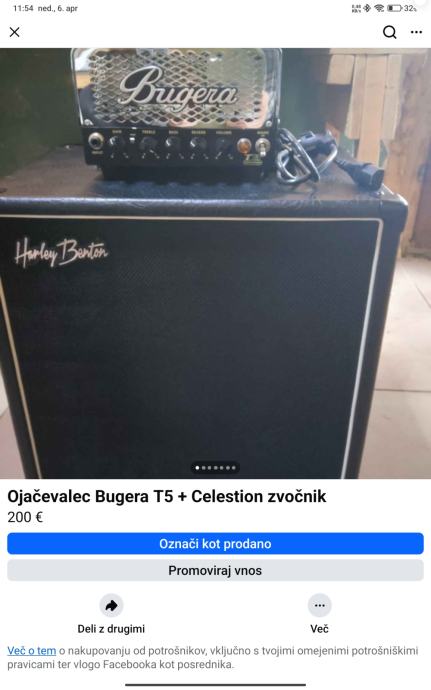 Kot nov, star 10 mes., v garanciji....možnost izbire glasnosti z vgrajenim stikalom 5w,1w ali 0,1w...zelo glasen pri 5w, kar je dovolj za vaje in v načinu 1 oz 0.1w odličen za v sobo, ker ohrani ves zvok elektronk pri nižji glasnosti. Sem 1. lastnik, zelo malo uporabljan izključno doma....Šentjernej....040 800098