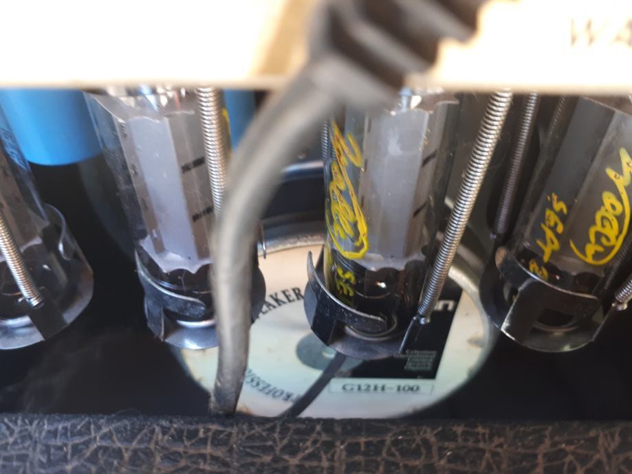 Ima 2 kanala, 100 watt s 4x EL34 elektronkami, sestavljen v Angliji, iz najkvalitetnejših komponent (Drake transformatorja), ima reverb za vsak kanal in FX loop ter originalen zvočnik Celestion G12. Ojačevalec je bil pretežno igran doma.