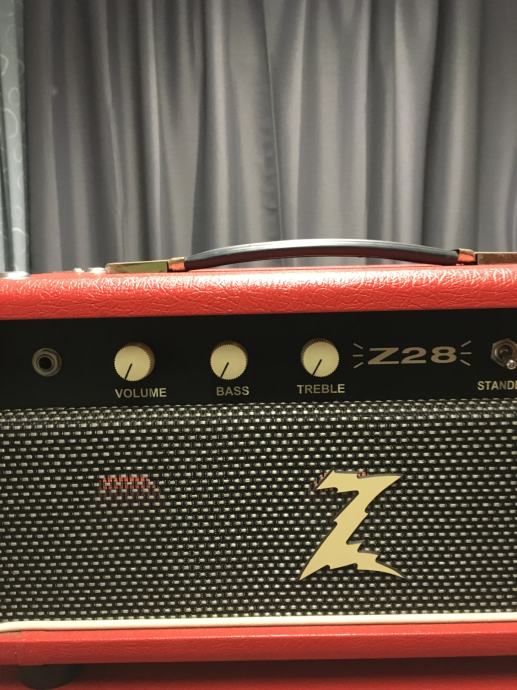 Butični Kanadsko Amerški ojačevalec Dr.Z 28. Vse point to point, narejen kot dobri stari Fenderji. Izhodne lampe 2x 6V6, preamp lampe 1x EF86, 1x12AX7, 1x 5AR4. Trije gumbi -volume, bas, treble. Bolj ko dvignemo bas in treble več ima drajva. Zelo enostavno in uporabno.