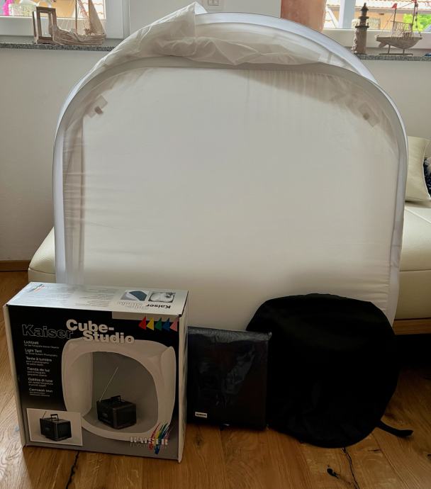 Prodam 2x rabljeno belo škatlo / White box / Mini fotografski studio / Cube Studio za fotografiranje, KAISER 5894, 90x90x90 cm