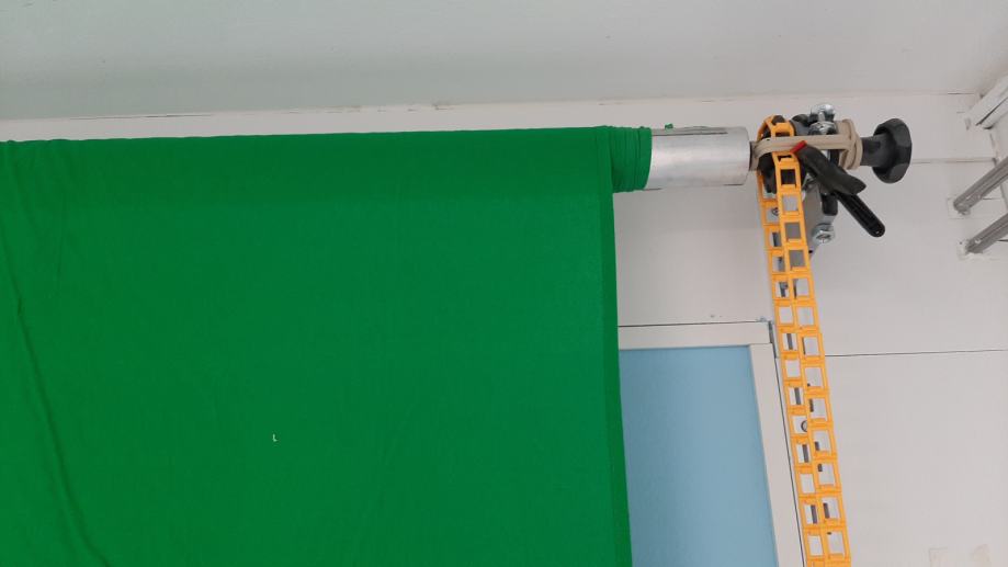Mehaniztem s palico za studijsko ozadje in platno zelene barve