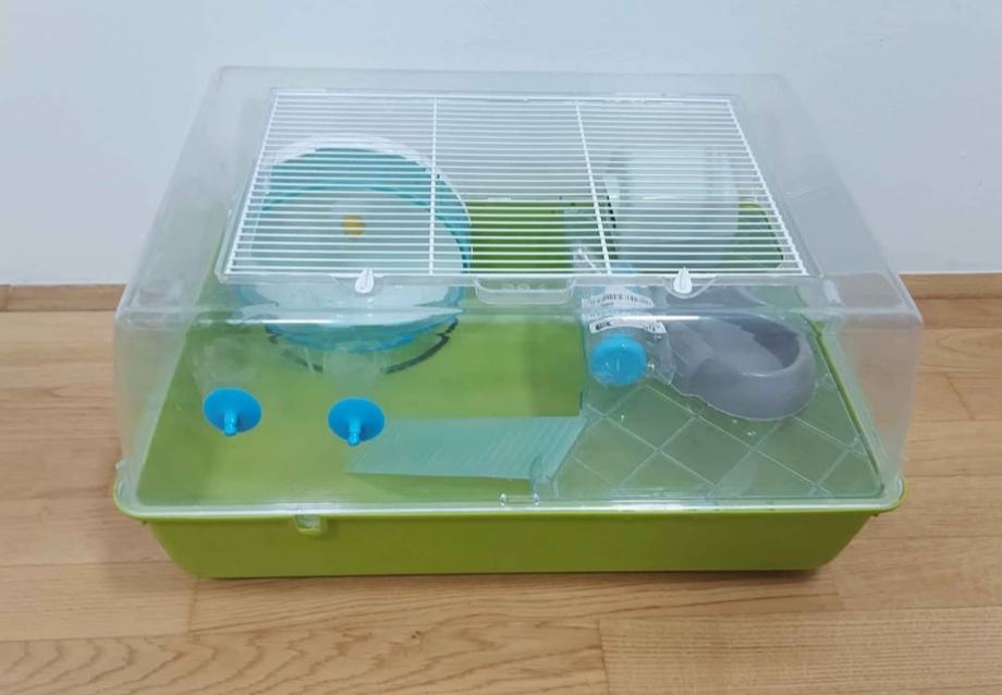 Prodam kletko z vso opremo in tihim kolesom, dodam tudi paket hrane za 30€. Kontakt 070 354 167
