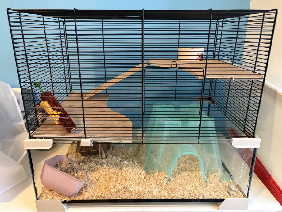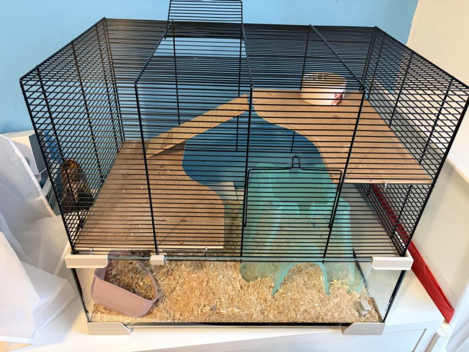 Prodam kletko za hrčka + rekvizite.