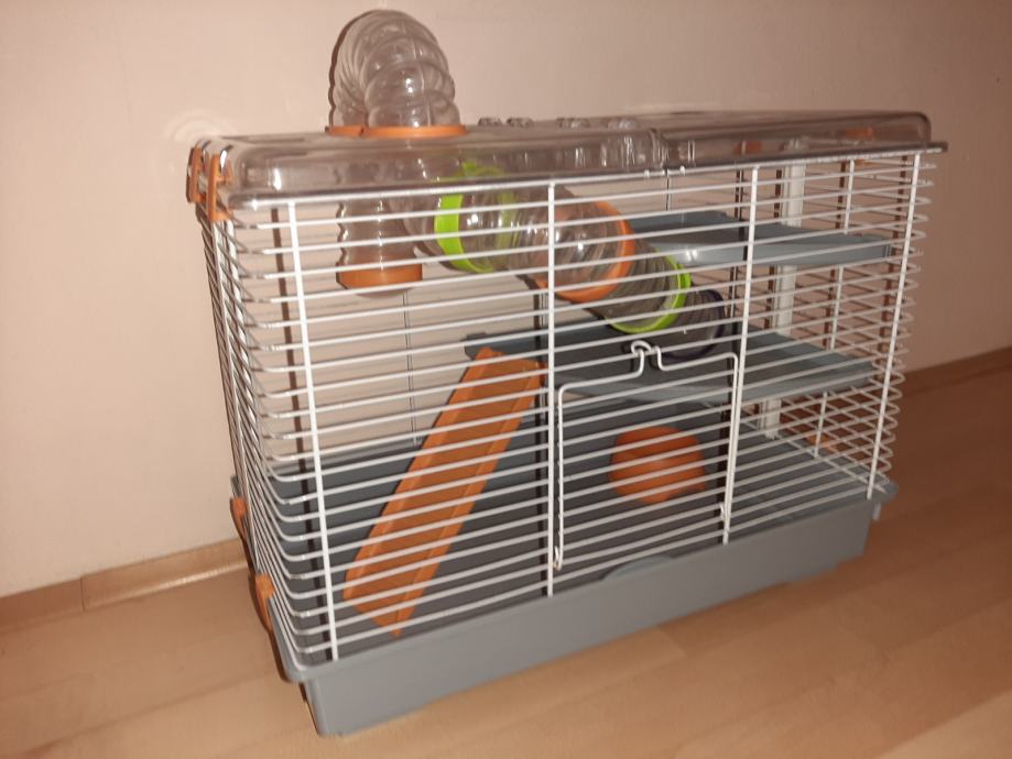 Prodam dobro ohranjeno kletko za hrčke z dodatnim kolesom in tuneli.