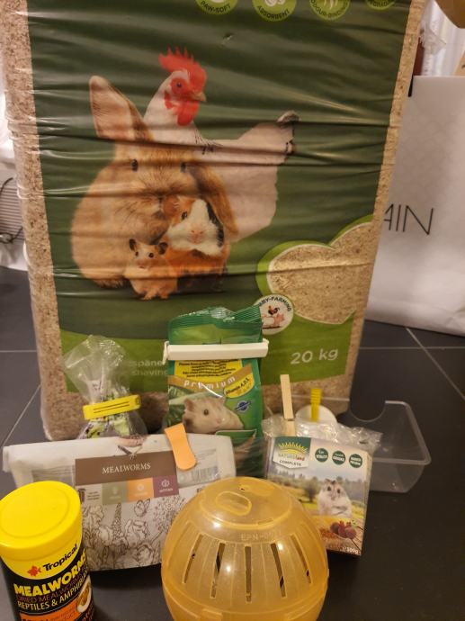 Prodamo lepo ohranjeno kletko dimenzije 50 x 33 x 45 cm in vse ostalo za hröke: prozorna kupola, kjer hrčki radi počivajo, plastična krogla za potepanje po sobi, kokos za spanje, kamen za brušenje zobkov, pesek za valjanje, nekaj hrane in priboljškov ter veliko vrečo žaganja za udobno bivanje. Manjka vam samo še hrček :-)))