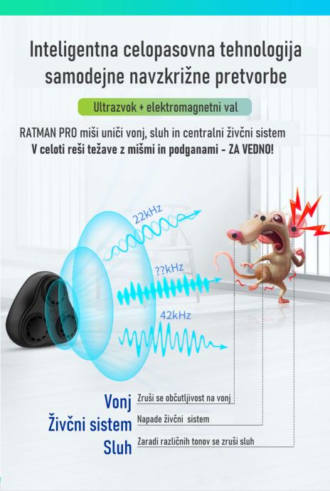 Pozabite na pasti, strupe in stres. Zdaj je tu **RATMAN PRO** – najnaprednejši **ultrazvočni odganjalec glodavcev**, ki trajno zaščiti vaš dom pred miši, podganami in kunami.