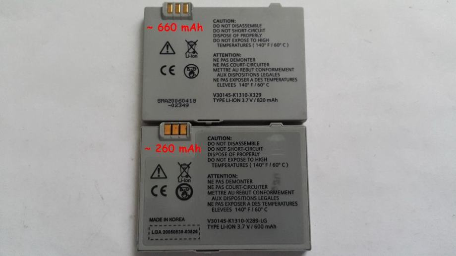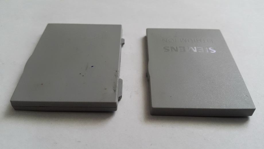 Prodam dve Siemens-evi bateriji za mobilne telefone, modela V30145-K1310-X329 in V30145-K1310-X289. Zadevi sem našel, ko sem čistil družinski predal nedavno. Ena baterija ima začuda še precej ohranjene svoje prvotne kapacitete (circa 80/88 %) – okoli 660 mAh. Medtem ko ima pa druga baterija bolj slabše stanje njene kapacitete (nekje med 35/43 %) – okoli 260 mAh. Da preprečim nadaljno degradacijo kapaciteti obeh baterij, ju ohranjam primerno izpraznjeni (cca. na 30 % napolnjenosti-izpraznjenosti). Za kapaciteto sta bile improvizirano testirani na polnilcu LiitoKala Engineer Lii-500. Cena v oglasu je za komplet (obe skupaj – z vračunanim popustom), po komadu je pa boljša 8 €. Že čakata na svojega novega lastnika.
